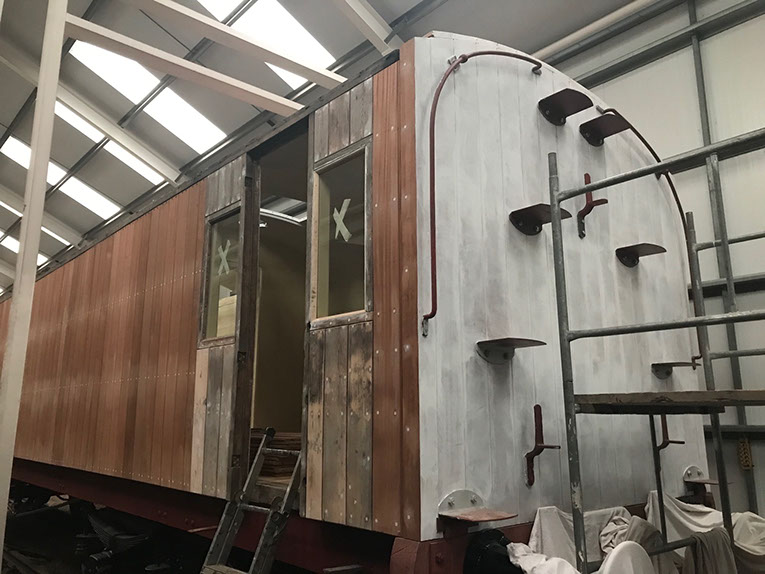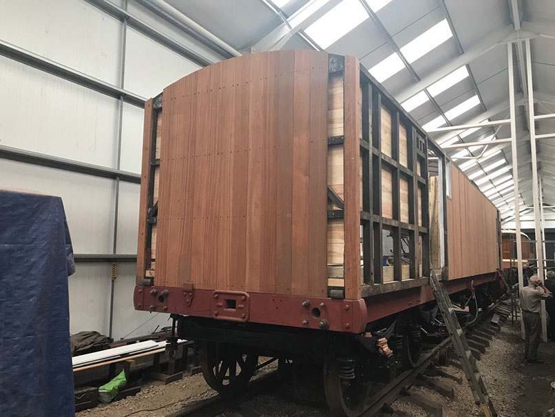 While we’ve been talking a lot about the locomotive of late, the unique NER 1902 built Bogie Stores Van also being restored as part of the overall project has also been cracking on. A few months work on it yet but you can see it’s getting nearer to the finish line!