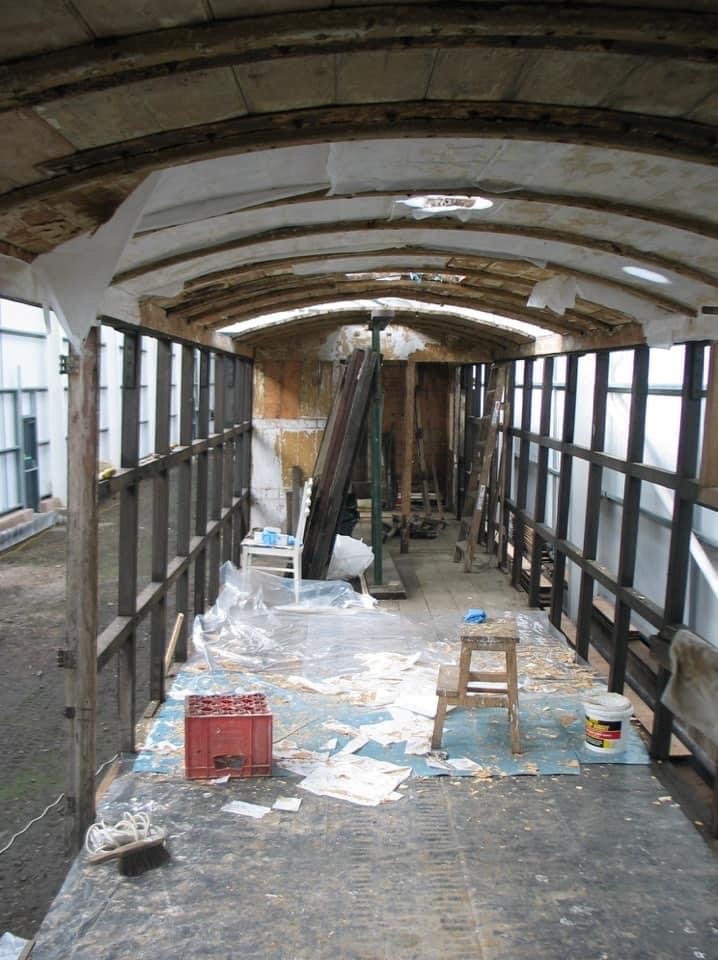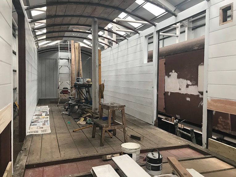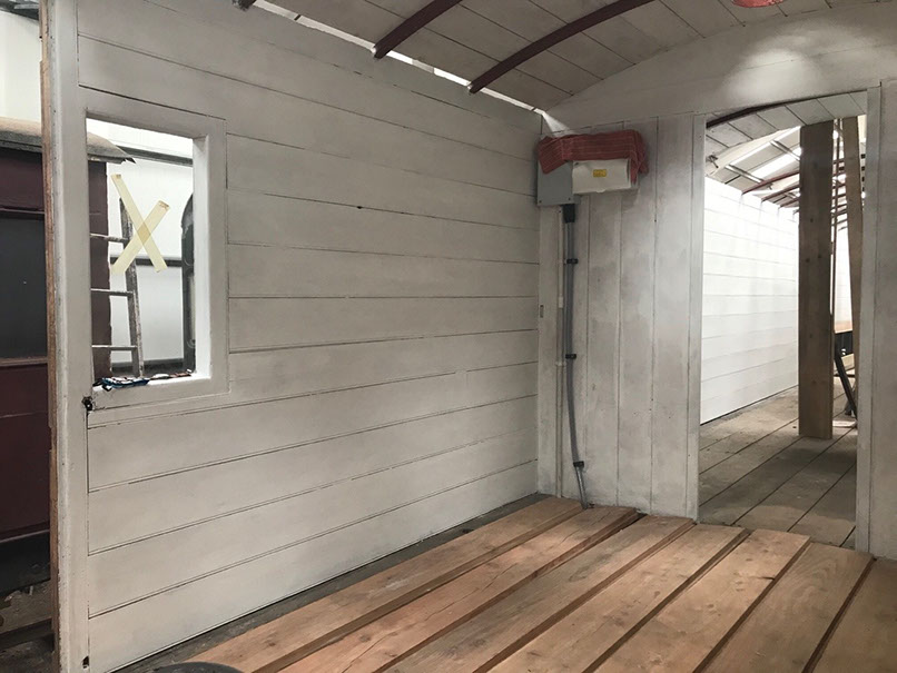 If a picture paints a thousand words then you’re looking at an entire book here! As the restoration of our unique 1902 North Eastern Railway Bogie Stores Van nears completion a number of lost interior features are starting to reappear.