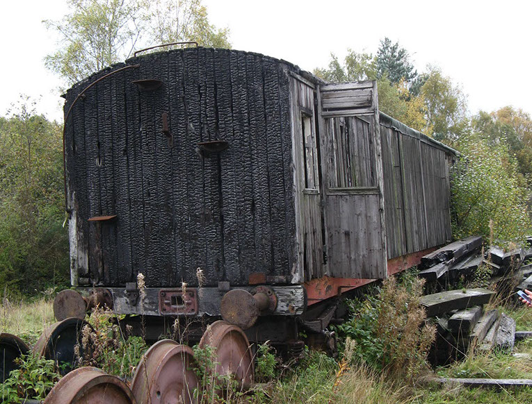 What a difference two years have made on our Bogie Stores Van. Yes, both pictures are of the same end of the vehicle but after a first-class and very thorough rebuild the contrast is striking.