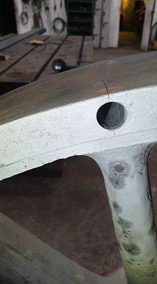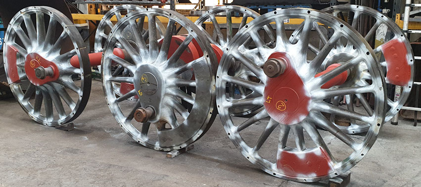 With the shot-blasting and Non-Destructive Testing (NDT) of the driving wheels complete, all that was required was some minor remedial welding of some small cracks by a coded welder. The wheels were then primed and will shortly depart to South Devon Railway Engineering Ltd for new tyres to be fitted.