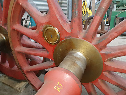 SDRE Ltd have also similarly refurbished the driving wheels including new crank pins. Elsewhere on the locomotive the many parts have been refurbished and stored ready for rebuilding. This refurbishment has included specialist cast iron welding of major fault and also welding to make good some minor cracks, such as on the cylinder block.